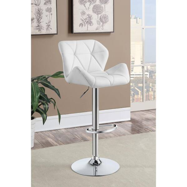 25 in. White and Chrome Low Back Metal Frame Adjustable Bar Stools with Faux Leather Seat (Set of 2)