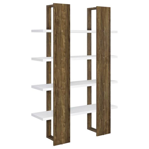 70.75 in. Aged Walnut and White Wood 4-Shelf Modern Bookcase