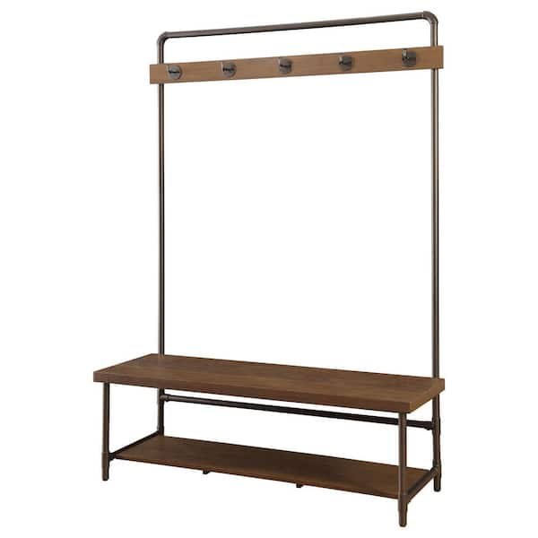 Alise Chestnut and Dark Bronze Hall Tree with 5-Coat Hooks