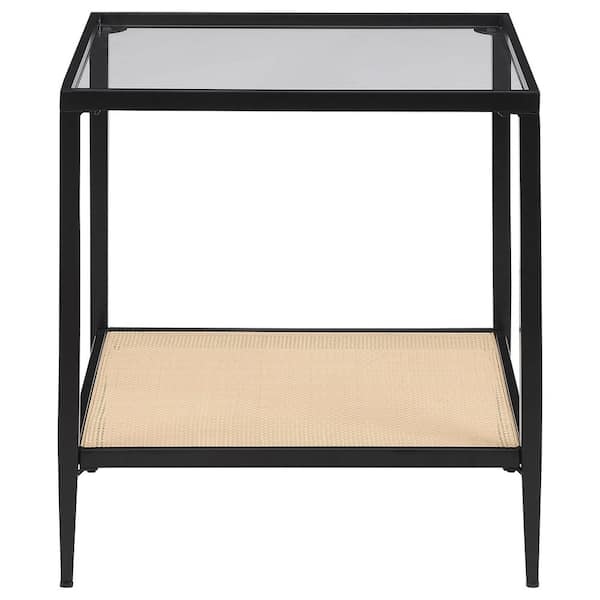 Amherst 22 in. Black Metal Frame Square Glass Top End Table with Cane Shelf