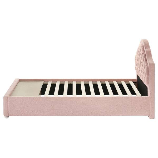 Ashleigh Pink Wood Frame Twin Platform Bed with Upholstered and Storage