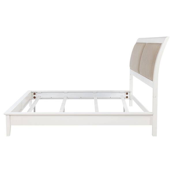 Bexhill White and Linen Wood Frame Eastern King Panel Bed with Upholstered Headboard