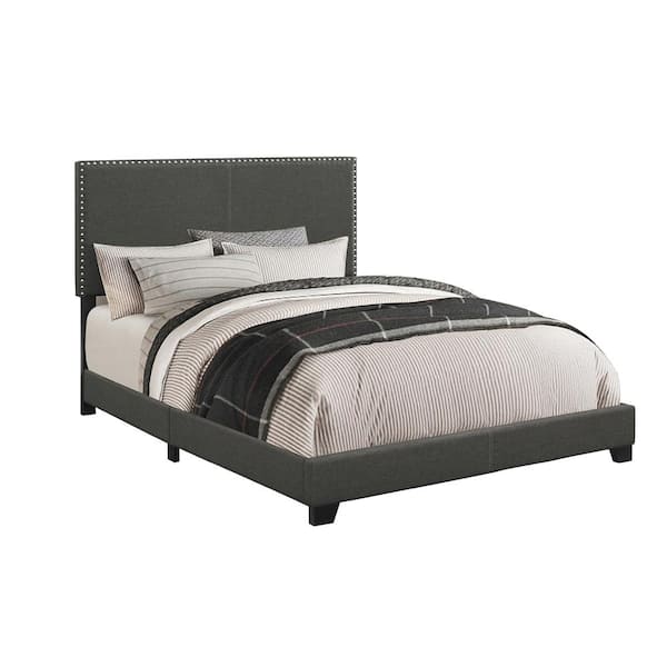 Boyd Gray Wood FrameFabric Upholstered California King Panel Bed with Nailhead Trim