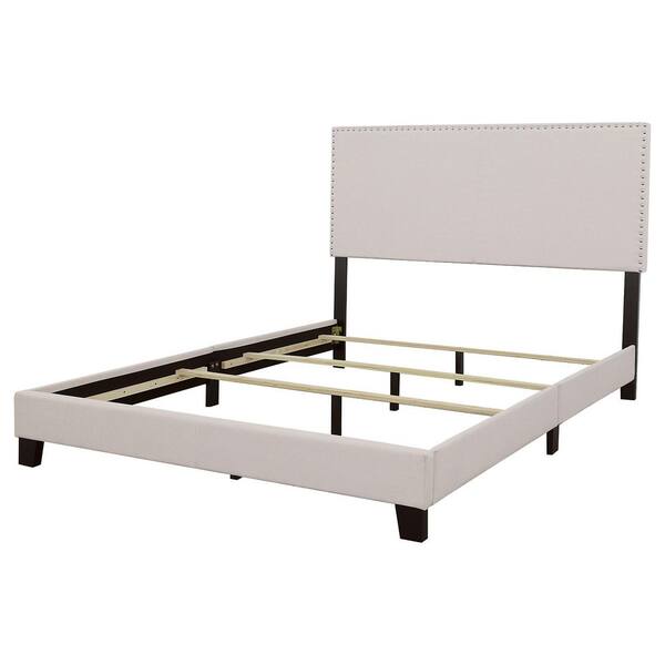 Boyd Ivory Wood Frame Queen Panel Bed with Nailhead Trim
