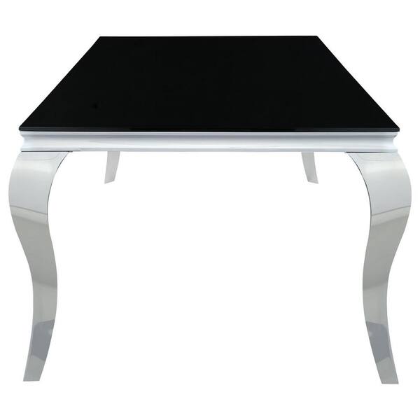 Carone Rectangle Chrome and Black Glass Top 4 Legs Dining Table Seats 4