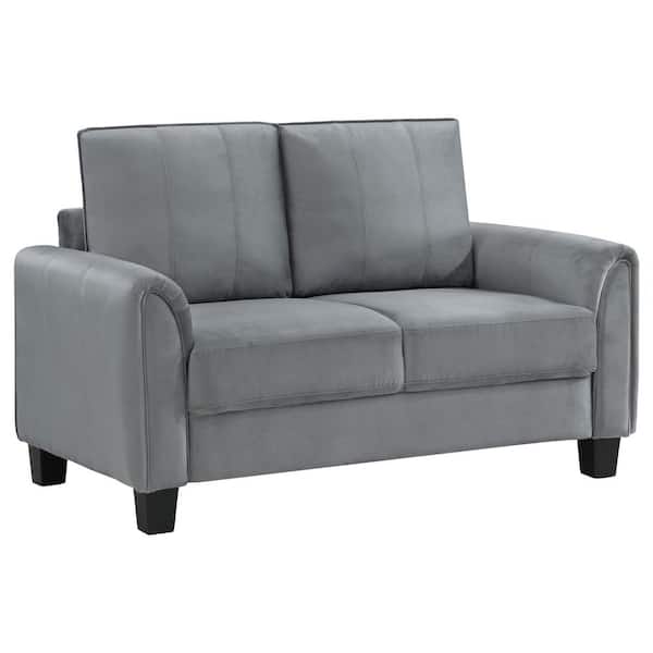 Davis 57 in. Gray Velvet Upholstered 2-Seats Rolled Arm Loveseat