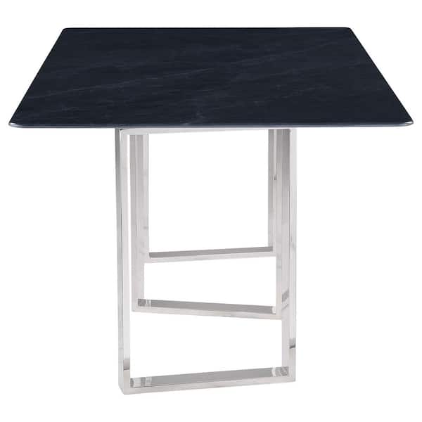 Desden Contemporary Grey Marble Sintered Stone Top 79 in. Sled Dining Table Seats 10