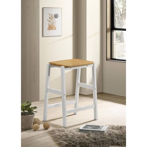 Edgeworth 23.75 in. Natural and White Backless Wood Frame Counter Stool (Set of 2)