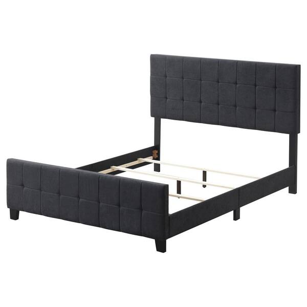 Fairfield Dark Grey Wood Frame Queen Panel Bed with Grid Tufted Headboard