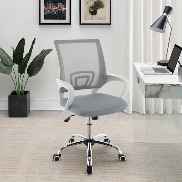 Felton Fabric Adjustable Height and Contoured Mesh Back Ergonomic Office Chair in Light Grey with Arms
