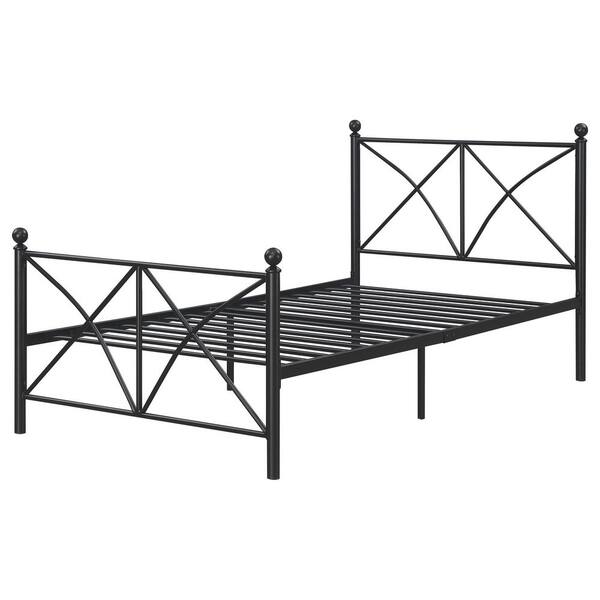 Hart Matte Black Open Metal Frame Full Platform Bed with X-Style Pattern on Headboard