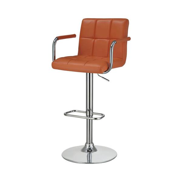 37.5 in. Orange and Chrome Tufted Back Metal Frame Adjustable Height Bar Stool