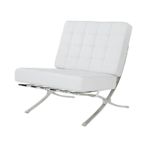 White and Chrome Tufted Back Accent Chair