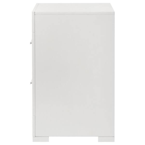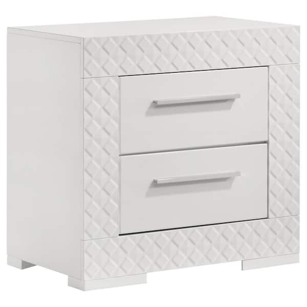Ives White High Gloss 2-drawer Nightstand Bedside Table with Felt-lined Top Drawer