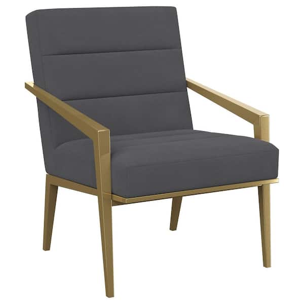 Kirra Dark Grey and Gold Fabric Accent Chair with Metal Frame and Channel Tufted