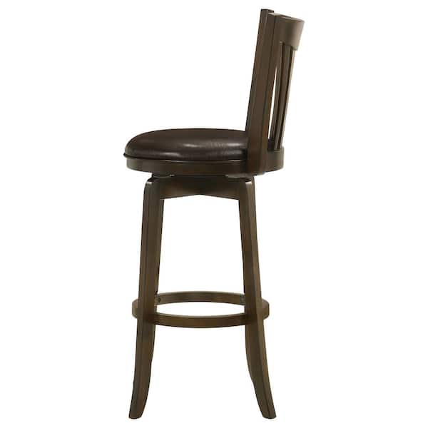 Lambert 30.25 in. Dark Cherry Pub Height Swivel Wood Bar Stool with Upholstered Seat