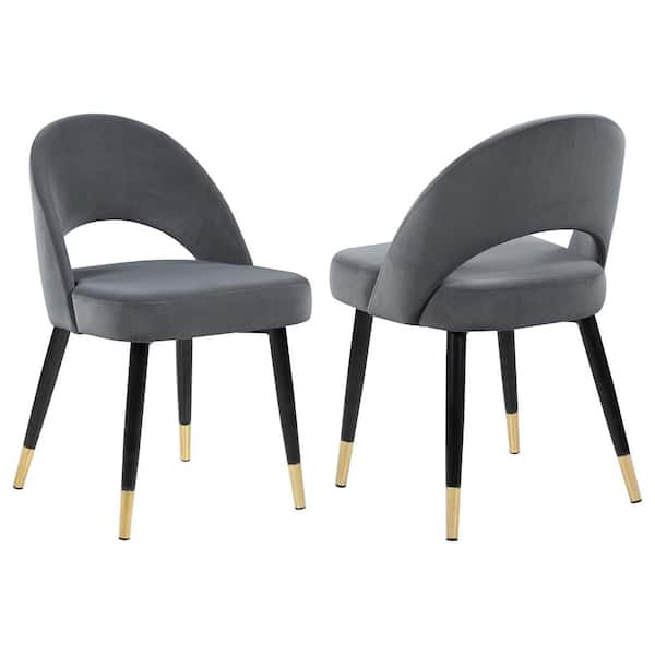 Lindsey Gray Velvet Upholstered Open Back Side Chair (Set of 2)