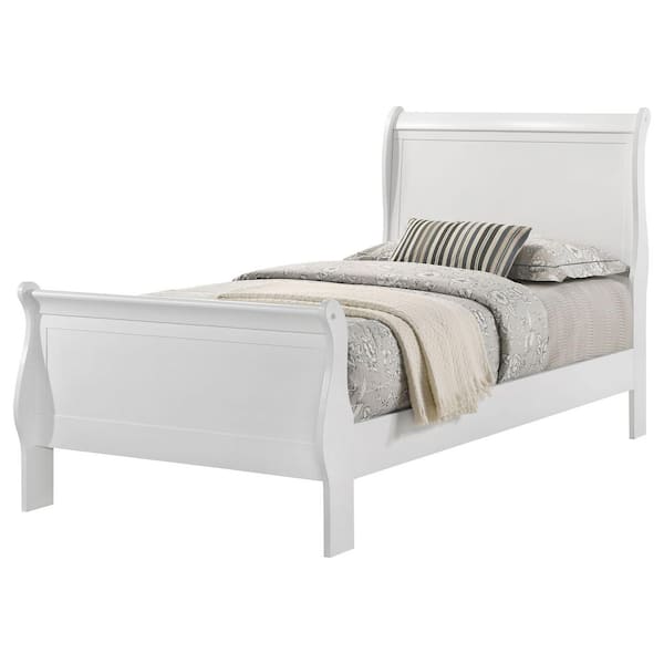 Louis Philippe White Wood Frame Twin Sleigh Panel Bed with Curvy Legs
