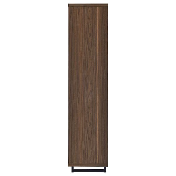 • 70.75″ walnut & black 4-shelf bookcase with doors