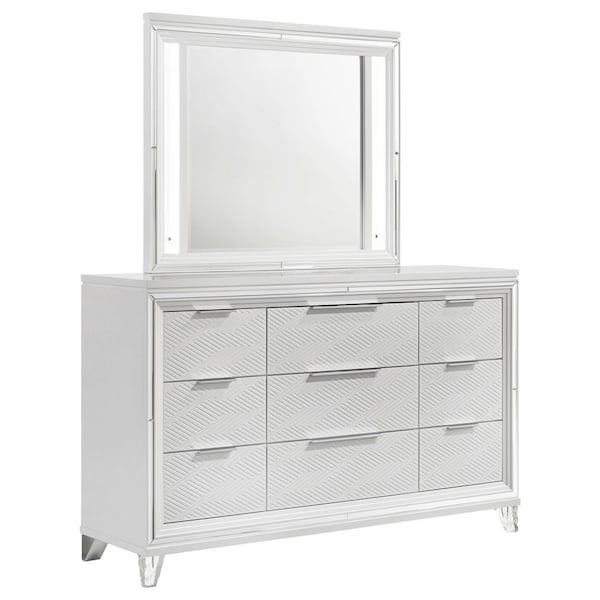 Marmore White 9-drawer 63.5 in. Dresser with LED Mirror