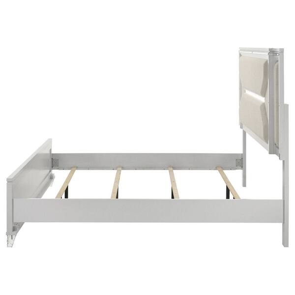 Marmore White and Off White Wood Frame Queen Panel Bed with 3D Headboard Upholstered