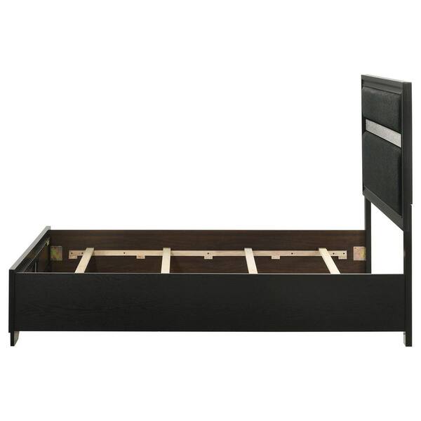 Miranda Black Wood Frame California King Panel Bed with Diamond-like Trim