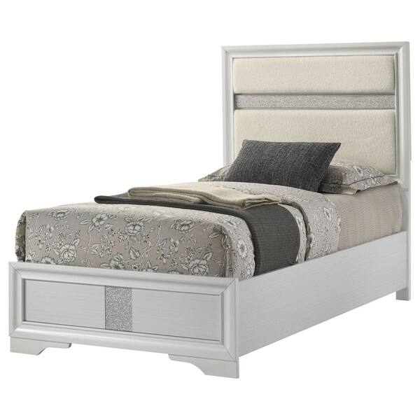 Miranda White Wood Frame Twin Panel Bed with Diamond-like Trim
