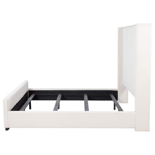 Natasha White Wood Frame Eastern King Panel Bed with Nailhead Trim and Wingback Headboard