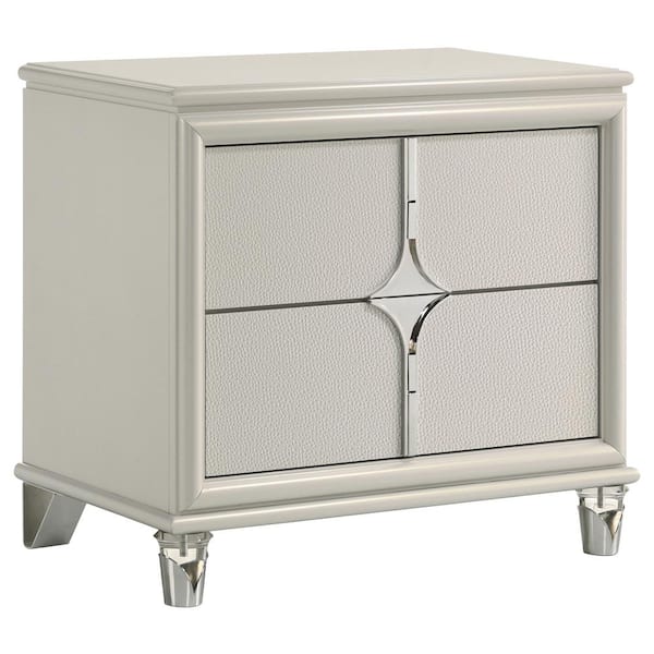 Olivia Pearl White 2-Drawer Contemporary Nightstand Bedside Table