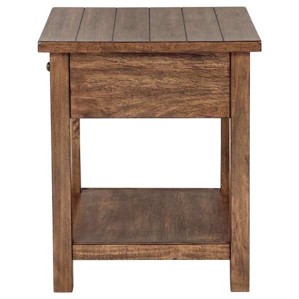Payne 20 in. Distressed Brown 1-Drawer Square Wood Top End Table with Shelf