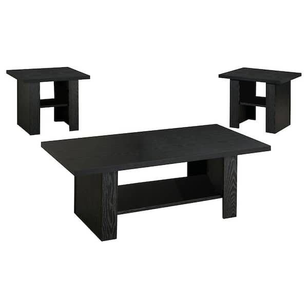 Rodez 3-piece Black Oak Rectangle Wood Coffee Table Set with Shelf