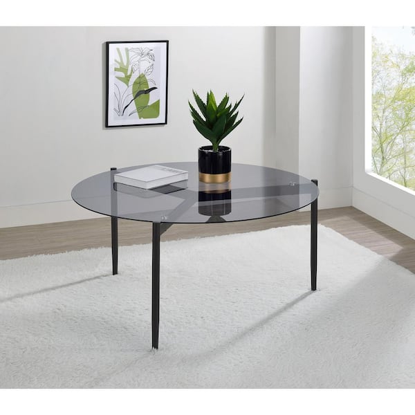 Rosalie 36 in. Sandy Black Round Glass Top Coffee Table