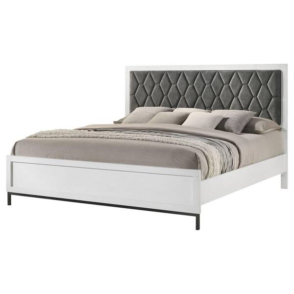 Sonora White and Dark Grey Wood Frame Eastern King Panel Bed with Hexagonal Tufting
