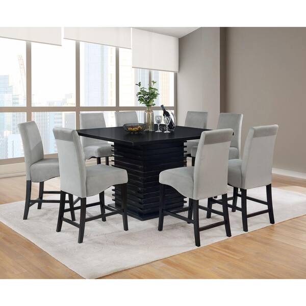 Stanton 24.5 in. Black and Grey Solid Back Wood Frame Counter Height Stool (Set of 2)