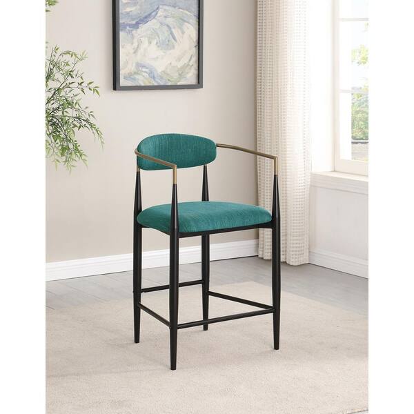 Tina 25 in. Green Open Back Wood Counter Height Bar Stool with Fabric Seat (Set of 2)