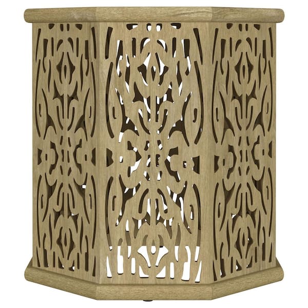 Torres 17.5 in. Natural Brown Octagonal Solid Wood End Table with Intricate Openwork Carvings