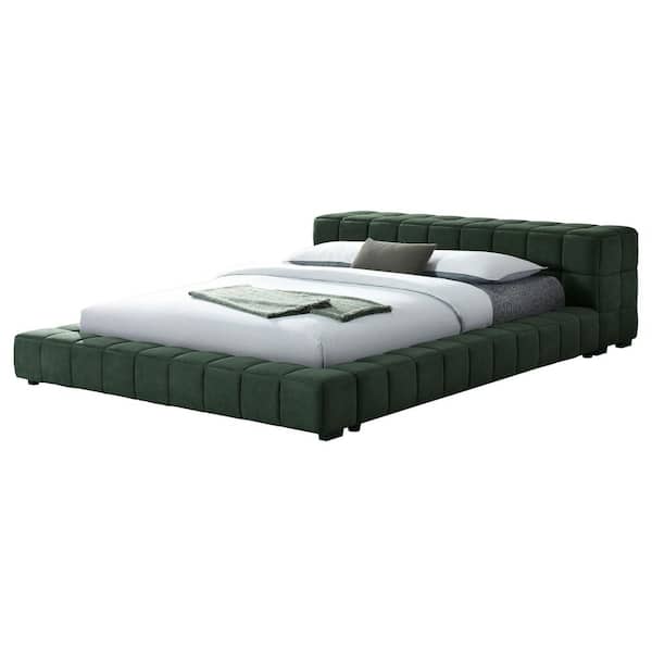 Trinity Green Wood Frame Full Platform Bed with Rectangular Block Headboard