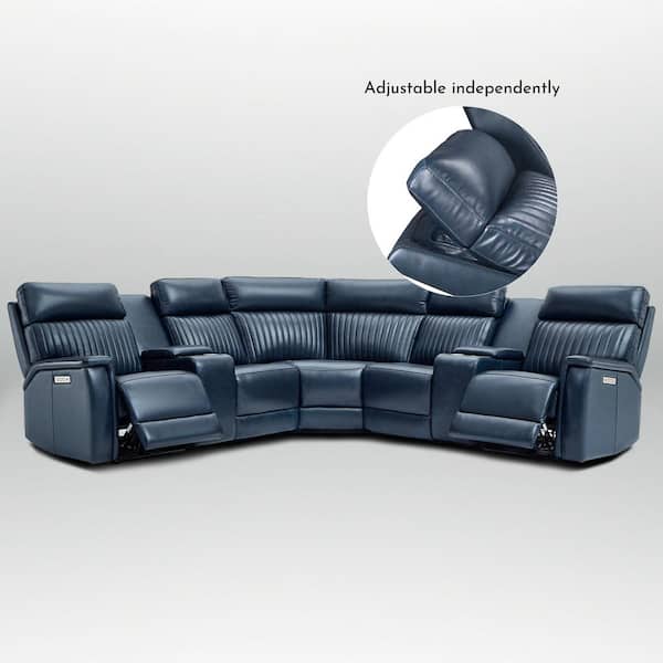 Cole 117 in. Genuine Leather Power Recliner Sectional Sofa with Console, Zero Gravity, 1 Power Armlesschair in DarkBlue