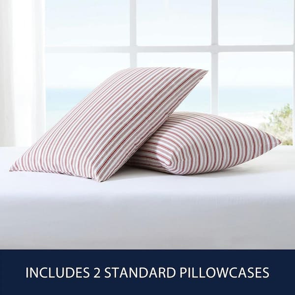 Coleridge Stripe 1-Piece Red Cotton Standard Pillowcase