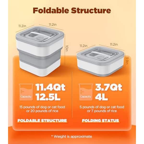 Collapsible 15 lbs. Max Capacity Dog Cat Food Storage Container with Magnetic Lid and Measuring Cup Multi Purpose