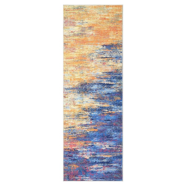 Colorful 2 ft. x 6 ft. Modern Abstract Soft Washable Polyester Area Rug