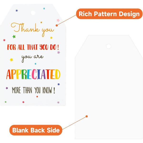 Colorful Star Thank You Gift Tags with String for Teacher Appreciation, Employee Volunteer Gifts, 100Pcs Pack