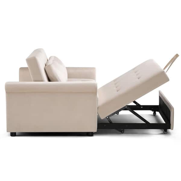 55 in. White Full Sleeper Sofa Bed 3-in-1 Velvet Pull Out Couch w/ Adjustable Backrest,Pillow Convertible Sleeper Couch