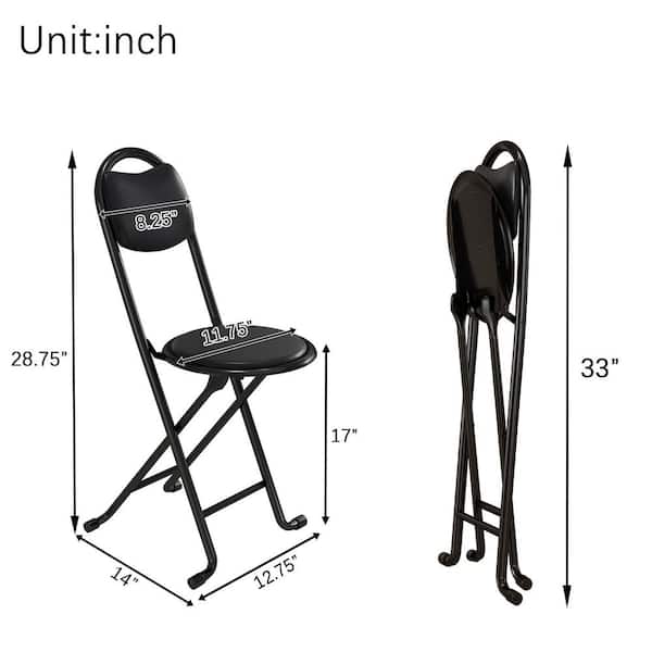 ComfortMax Black Cast Iron Folding Stool Set of 4-Padded Portable Chairs with Backrest for Indoor and Outdoor Use