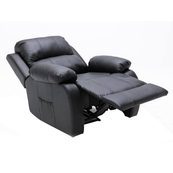 Comfortable Black Faux Leather Reclining Storage Recliner with Manual Angle Adjustment and Side Bags