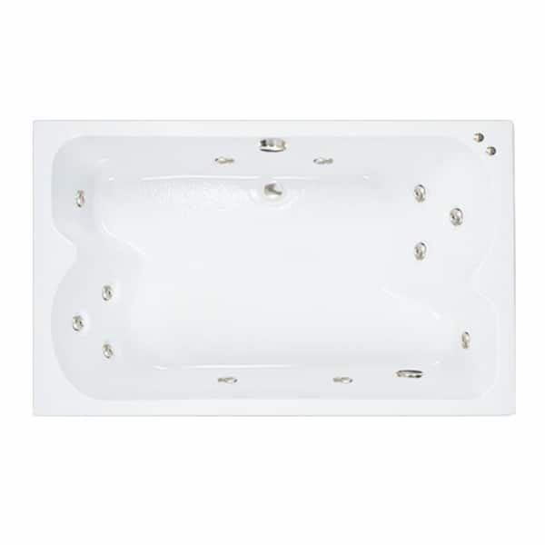 60 in. x 43 in. Acrylic Rectangular Drop-in Whirlpool Bathtub with Center Drain in Biscuit