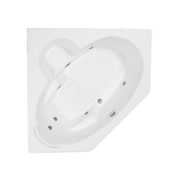 60 in. x 60 in. Acrylic Corner Drop-in Whirlpool Bathtub with Center Drain in Biscuit