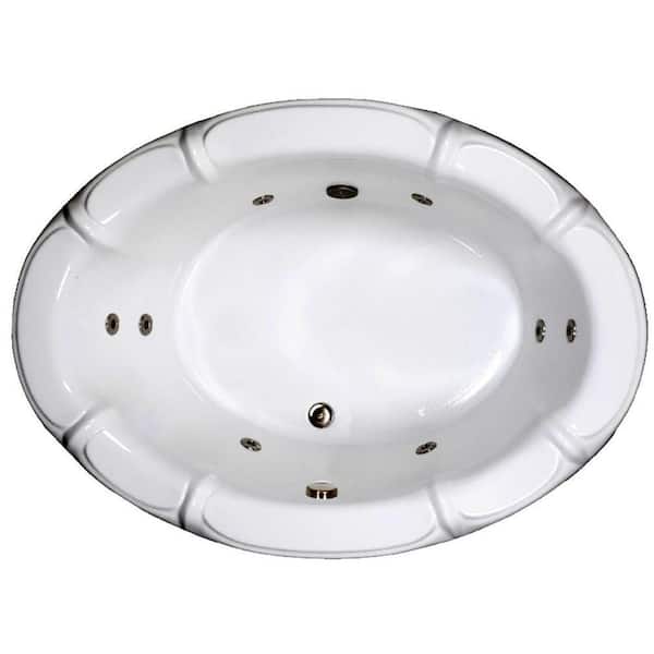 68 in. x 48 in. Oval Drop-in Whirlpool Bathtub with Center Drain in Bone