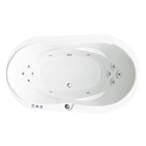 Premier 73 in. x 43 in. Acrylic Oval Drop-in Whirlpool Bathtub with Center Drain in Bone