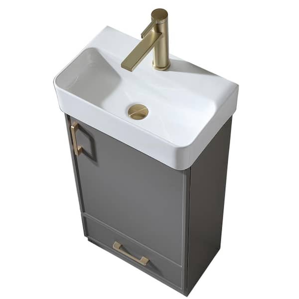 18 in. W x 11 in. D x 34 in. H Single Bathroom Vanity in Gray with White Ceramic Sink Top
